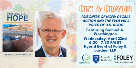 Join us for this installment of our popular Chat & Chowder series, featuring Samuel A. Worthington, Senior Fellow at Forus and former President & CEO of InterAction, the leading convener of the U.S. international NGO sector, to discuss his book, "Prisoners of Hope: Global Action and the Evolving Roles of U.S. NGOs." Chat & Chowder programs are an excellent opportunity to engage with expert speakers and to network with other globally-oriented participants in an informal environment. Each event features a presentation, audience Q&A, dedicated time for networking, and (of course!) a selection of chowders and beverages.